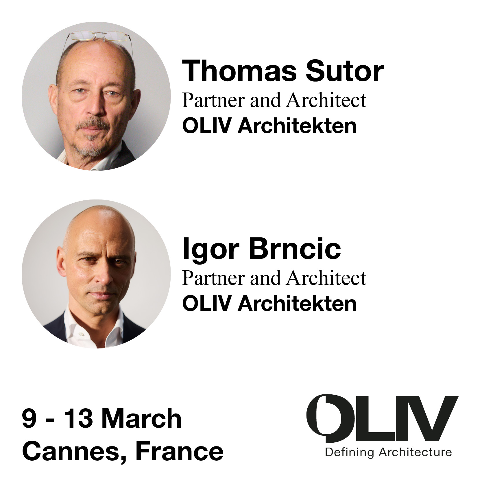 Thomas Sutor und Igor Brncic von OLIV Architekten sind auf der MIPIM 2026 in Cannes.