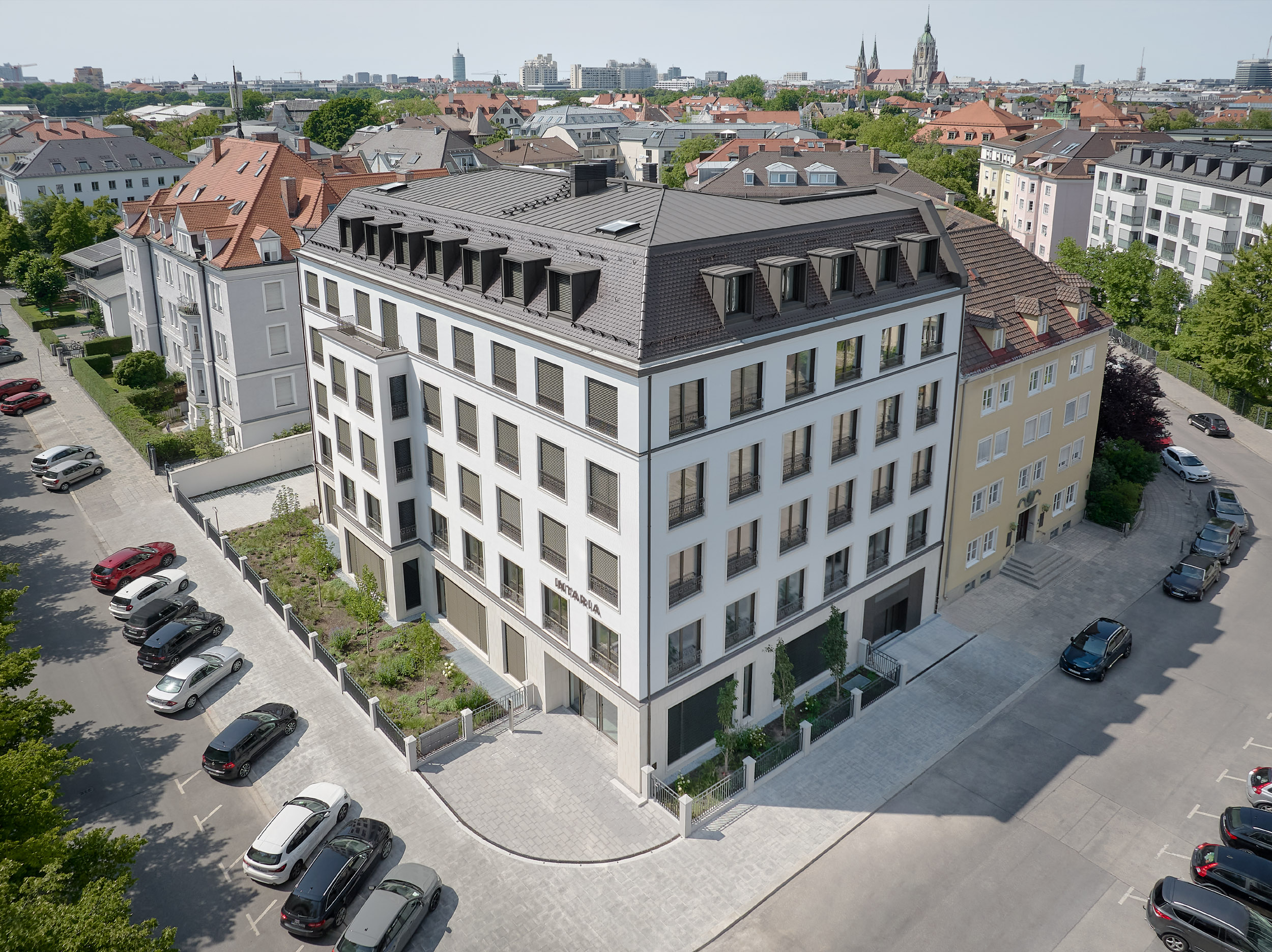 Die Steuerberatungs-, Wirtschaftsprüfungs- und Rechtsanwaltskanzlei Intaria AG mietet das gesamte Gebäude an und konsolidiert darin ihre Münchner Standorte. Das Gebäude steht für architektonische Zurückhaltung, die gestalterische Qualität mit zeitgemäßer Nutzung verbindet.