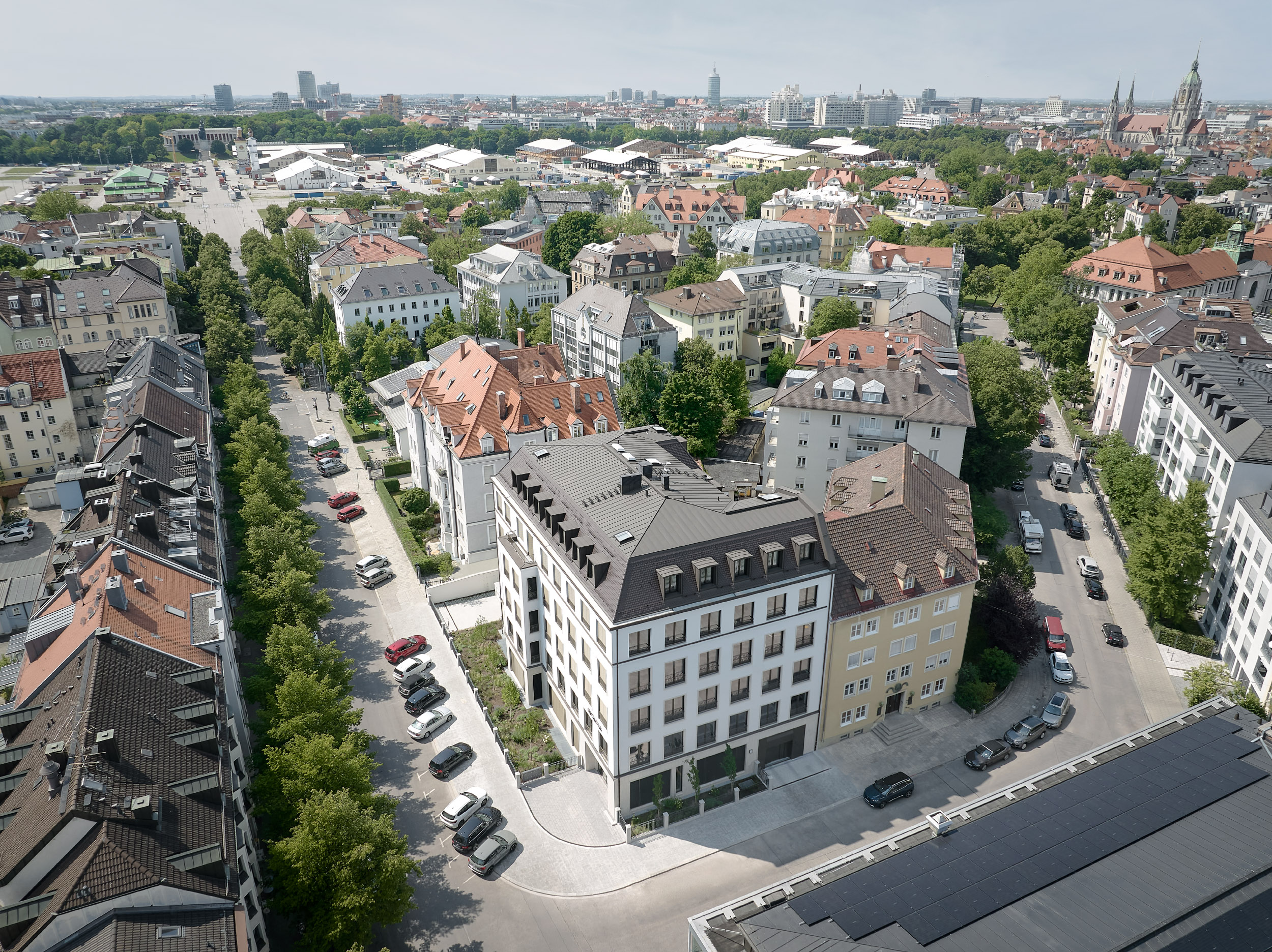Direkt am Eingang zum Wiesn-Viertel, dem denkmalgeschützten Ensemble in der Ludwigsvorstadt, haben OLIV Architekten ein Bürogebäude zwischen Goetheplatz und Kaiser-Ludwig-Platz realisiert. Die besondere Herausforderung bei diesem Projekt bestand darin, ein Wohngebäude in eine moderne Bürostruktur umzuwandeln und sich dabei harmonisch in die Nachbarschaft einzufügen.