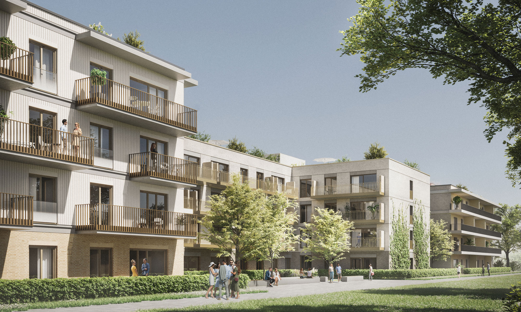 In Nürnberg Lichtenreuth entsteht eine neue Wohnanlage, bestehend aus drei Häusern mit insgesamt 128 Wohnungen. Die Anordnung der Häuser und deren städtebauliche Bezüge zueinander ist identitätsstiftend. Dadurch wird Platz für große Höfe und Grünflächen für die Bewohner zwischen den Gebäuden geschaffen.
