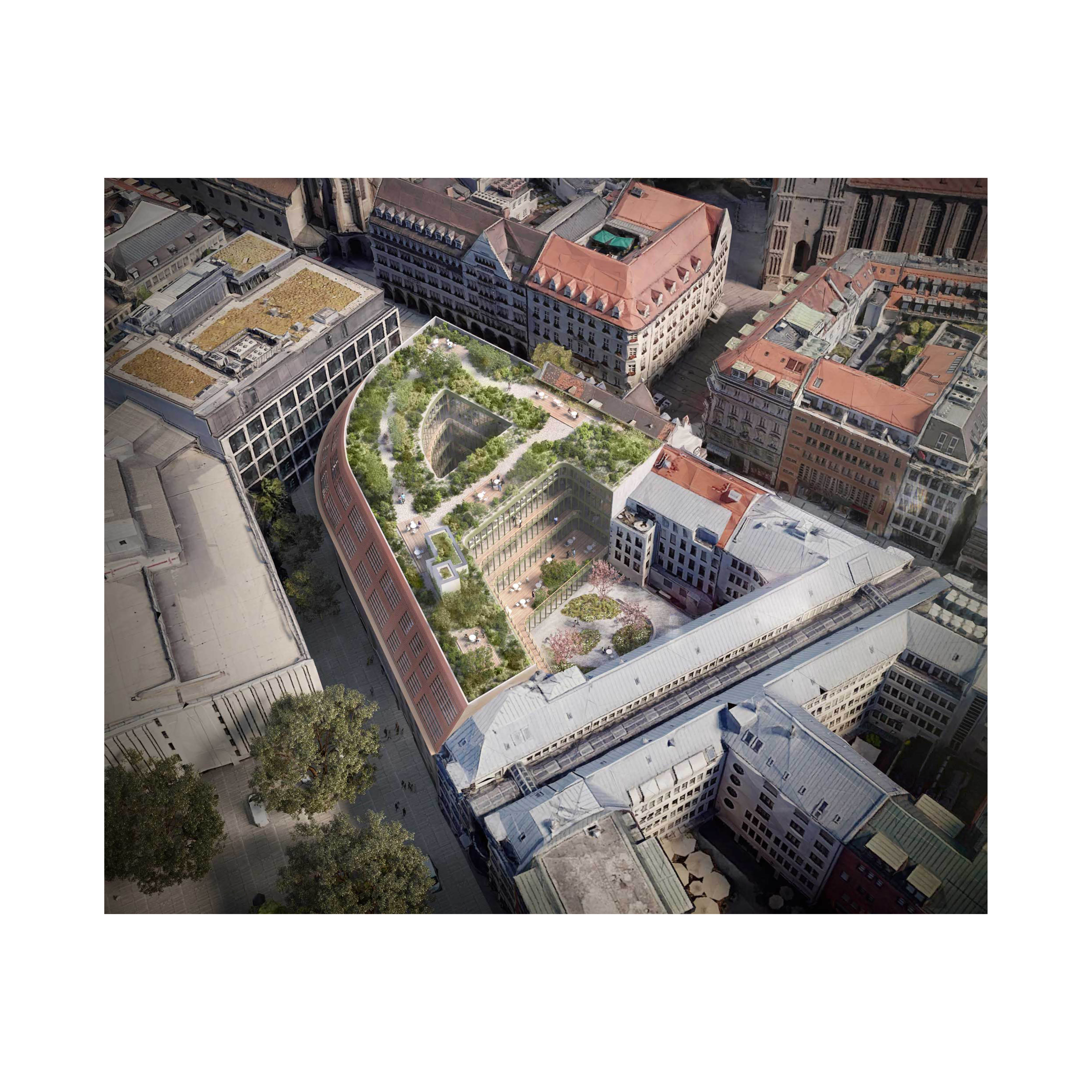 On Kaufingerstrasse, in the heart of Munich's city centre, we plan to revitalise three interconnected buildings. Historic elements will be preserved and complemented by innovative features such as a green roof terrace and photovoltaic panels. The project is called AIM and aims to enrich Munich's city centre with a versatile, sustainable and flexible mixed-use development. The revitalisation is expected to be completed by 2027.