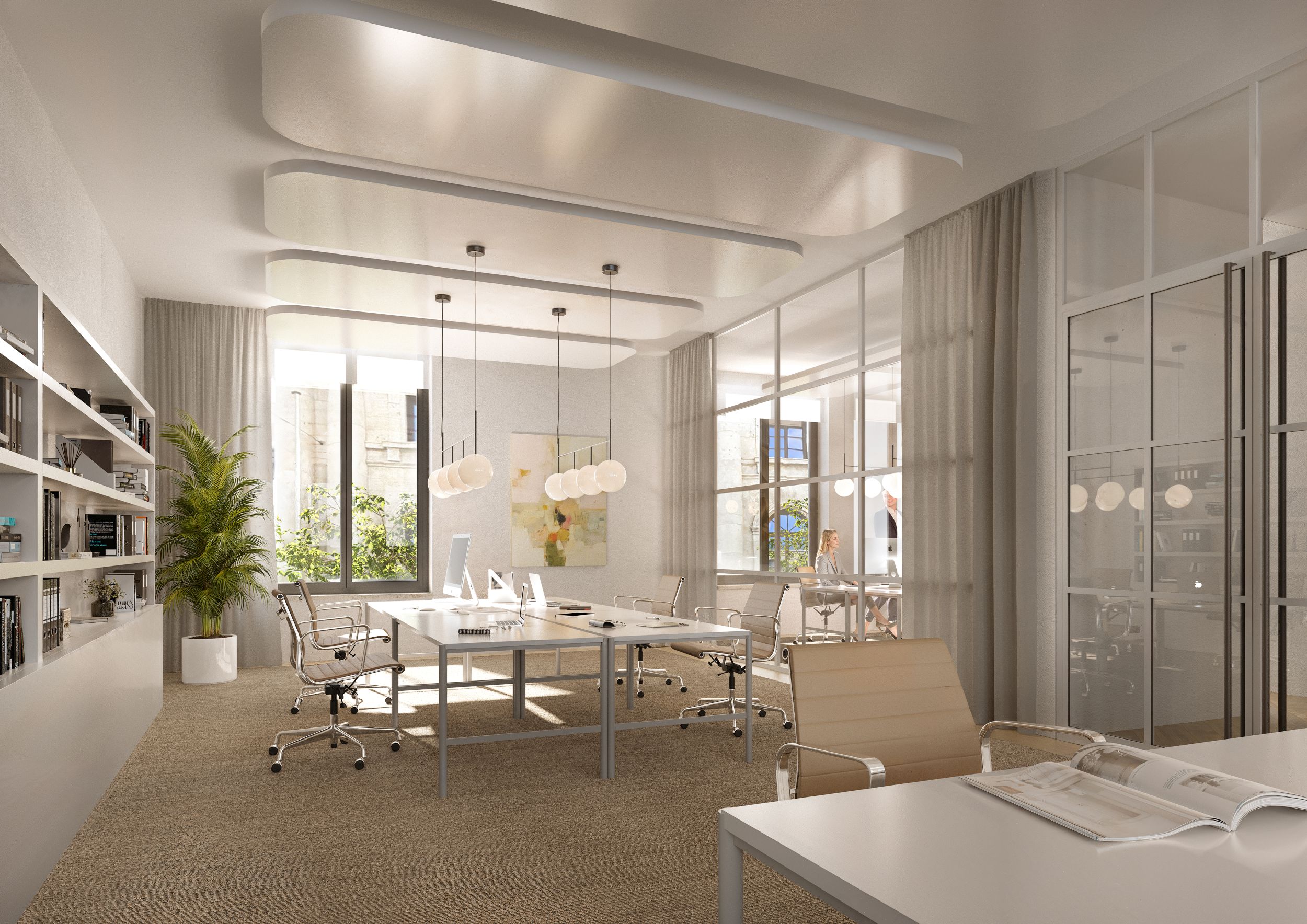 Unser Konzept sieht eine Modernisierung vor, durch die die Ursprungsidee des Gebäudes in die Gegenwart geführt wird. Es entstehen zeitgemäße Innenräume, die den heutigen Anforderungen der Arbeitswelt gerecht werden. Dabei respektieren wir das bauliche Erbe und schaffen eine zeitgemäße Präsenz in der Münchner Innenstadt.