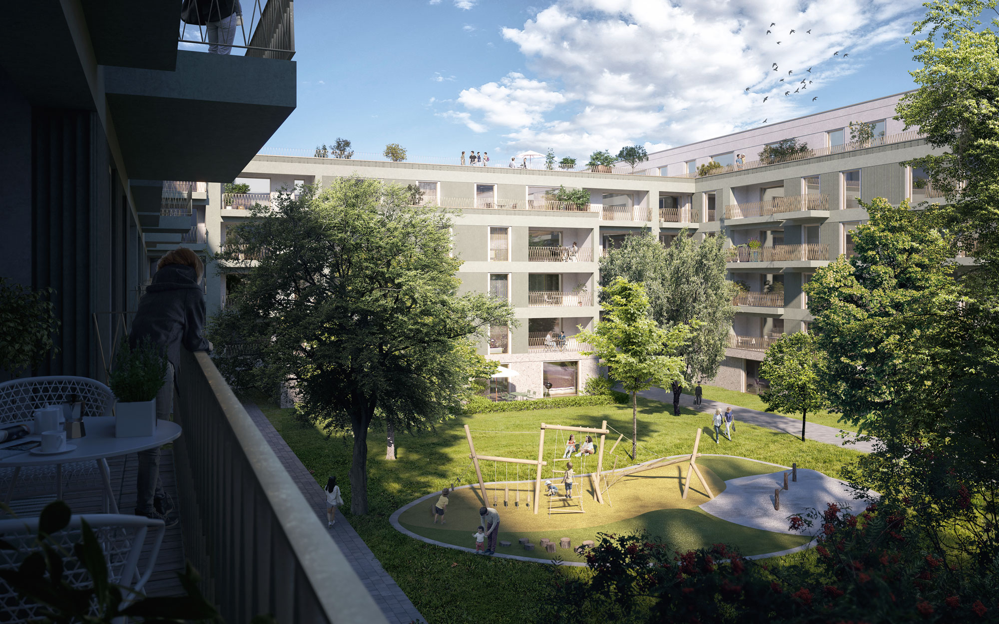 Realization in stages will enable existing tenants to move within the neighborhood. The contemporary apartment mix creates a cross-generational offer of 1-4 room apartments with attractive floor plans.