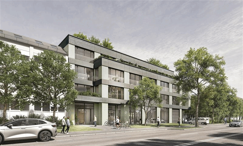 Geplant im Erweiterungsbau sind Räume für leichte Produktion, Labore und unterschiedliche Gewerbenutzungen. Im Erdgeschoss ermöglichen ebenerdige Anlieferungen und eine Deckenhöhe von über fünf Metern UKB flexible Nutzungen. Ab dem ersten Obergeschoss ergänzen großzügige Terrassenflächen das Gebäude und schaffen eine attraktive Arbeitsumgebung. Mit der erteilten Baugenehmigung und dem geschaffenen Baurecht eröffnet sich die Möglichkeit, im Münchner Osten einen architektonischen Impuls zu setzen, der über die Gegenwart hinausreicht und schon heute die zukünftige Entwicklung urbaner Arbeits- und Lebensräume mitdenkt und mitprägt.