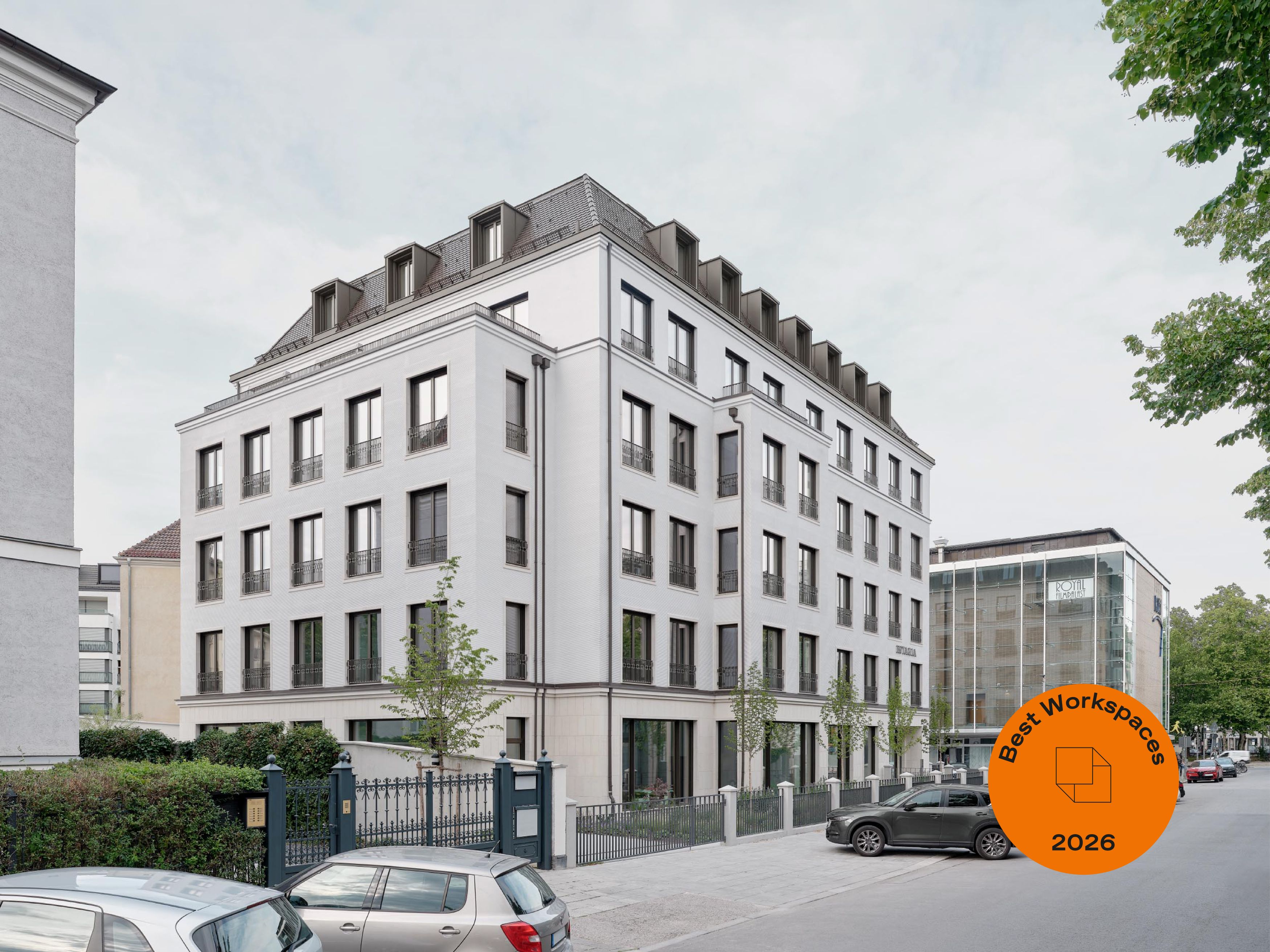 Damit integriert sich das Bürogebäude in das Gesamtbild der umliegenden Bebauung des prägenden Wiesnensembles. Hauptaugenmerk wird auf die Verwendung klassischer Architekturelemente und deren handwerkliche Ausarbeitung gelegt.