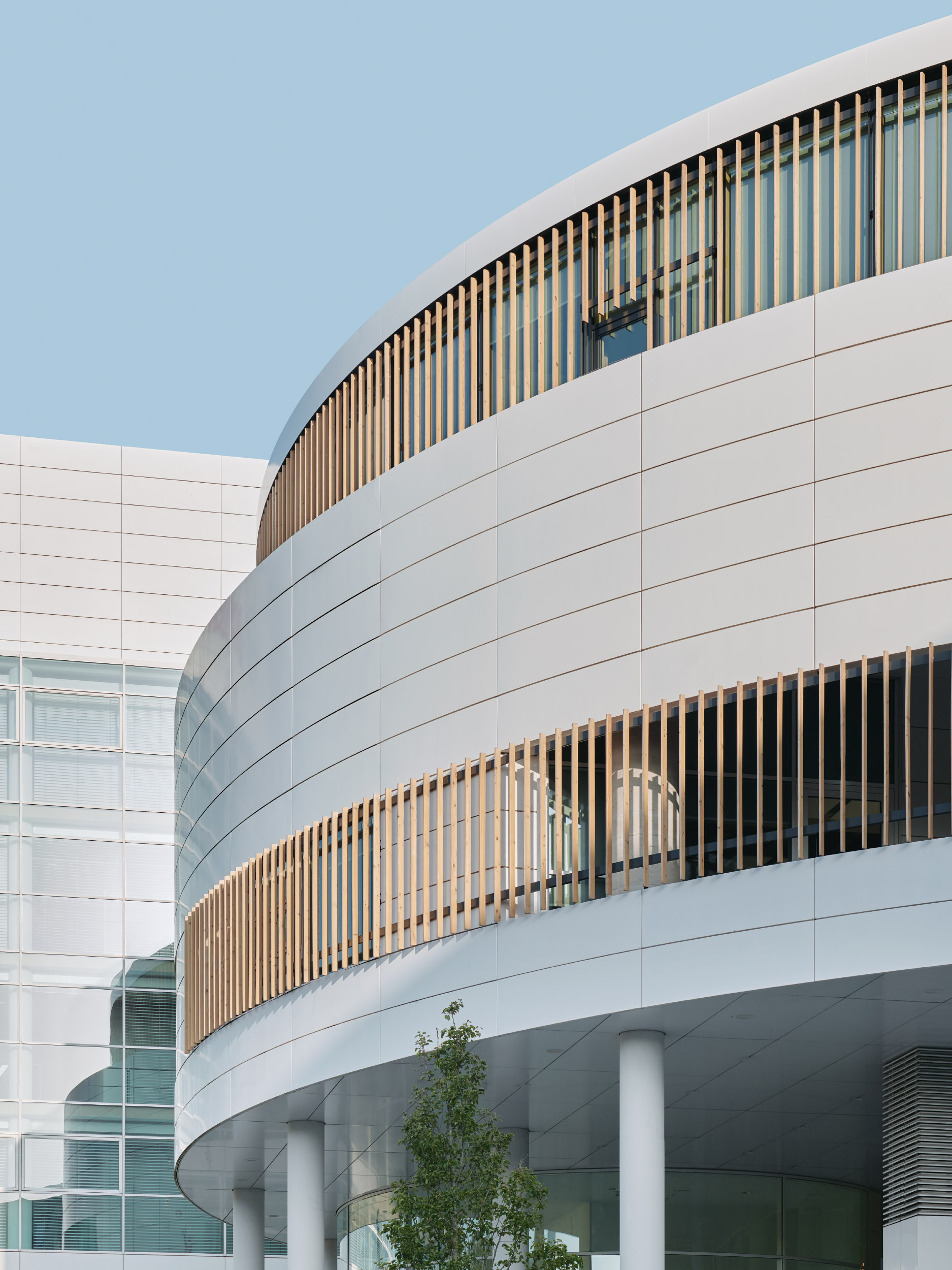 Als Ergebnis präsentiert sich Aer als maximal flexibles Bürogebäude mit zeitgemäßen Grundrissen. Verschiedene Nutzer und Nutzungen koexistieren und machen den Gewerbestandort zu einem lebendigen, urbanen Ort. Die Aufstockung ist eine Holzskelettkonstruktion mit HVB Decken um möglichst geringe Querschnitte zu erreichen und um ebenfalls eine optimale Akustik zu gewährleisten.