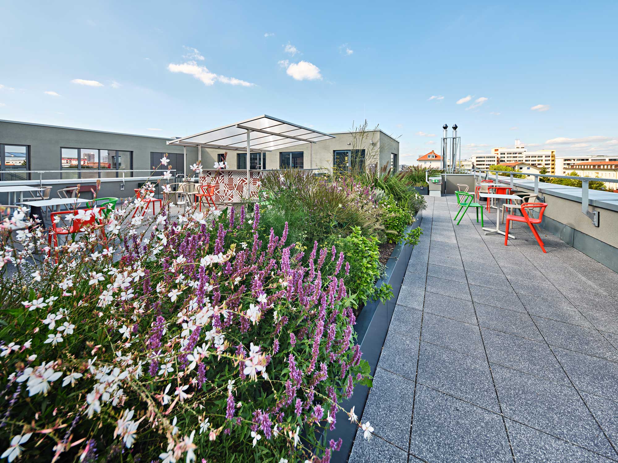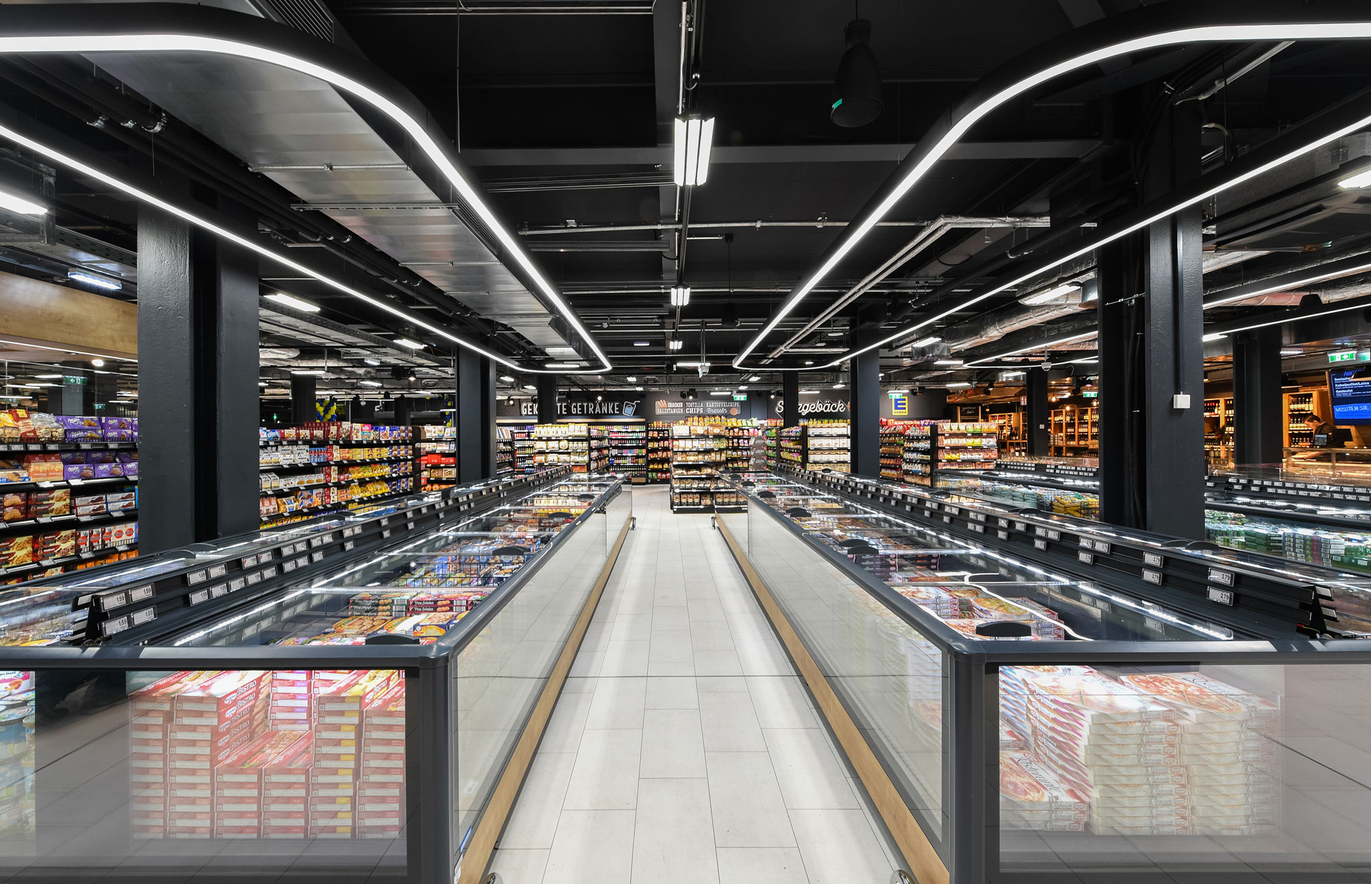 Im Erd- und ersten Obergeschoss zieht ein Supermarkt ein und die Aufstockung eines Terrassengeschosses schafft Raum für Büros. Begrünte Dachflächen, hochwertige Materialien und ein Lichthof schaffen eine unaufdringliche und zeitlose Gestaltung, welche sich in die gewachsene Umgebung nahtlos einfügt.