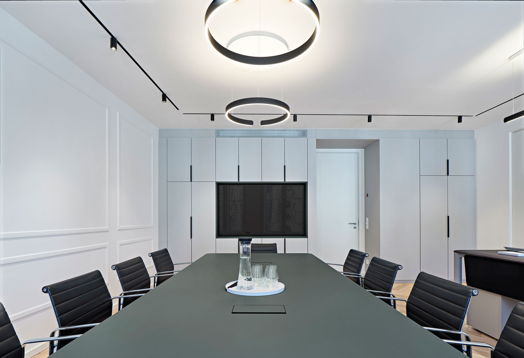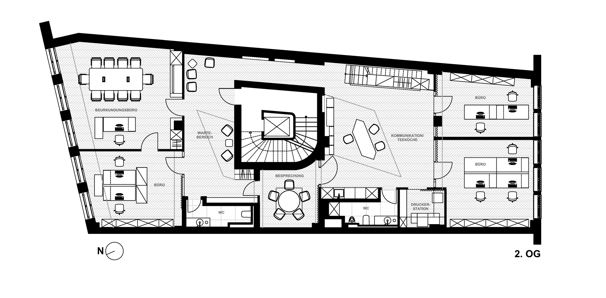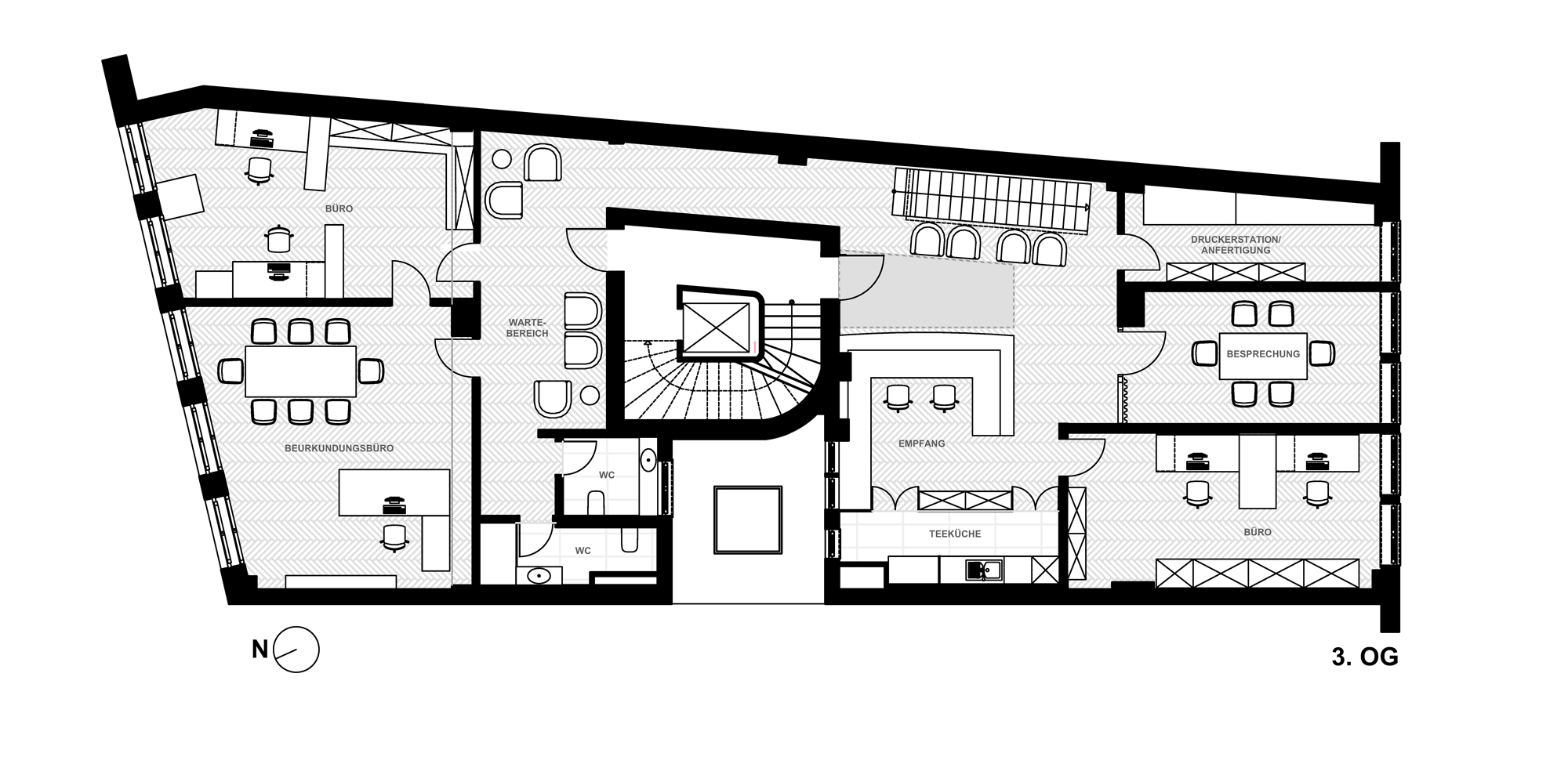 Das Notariat Hutterer & Weiß befindet sich am Marienplatz in München, direkt gegenüber dem Rathaus. Ziel der Umgestaltung der drei Etagen war es, ein einheitliches Erscheinungsbild aller Flächen zu erreichen und die Belichtungssituation zu optimieren.