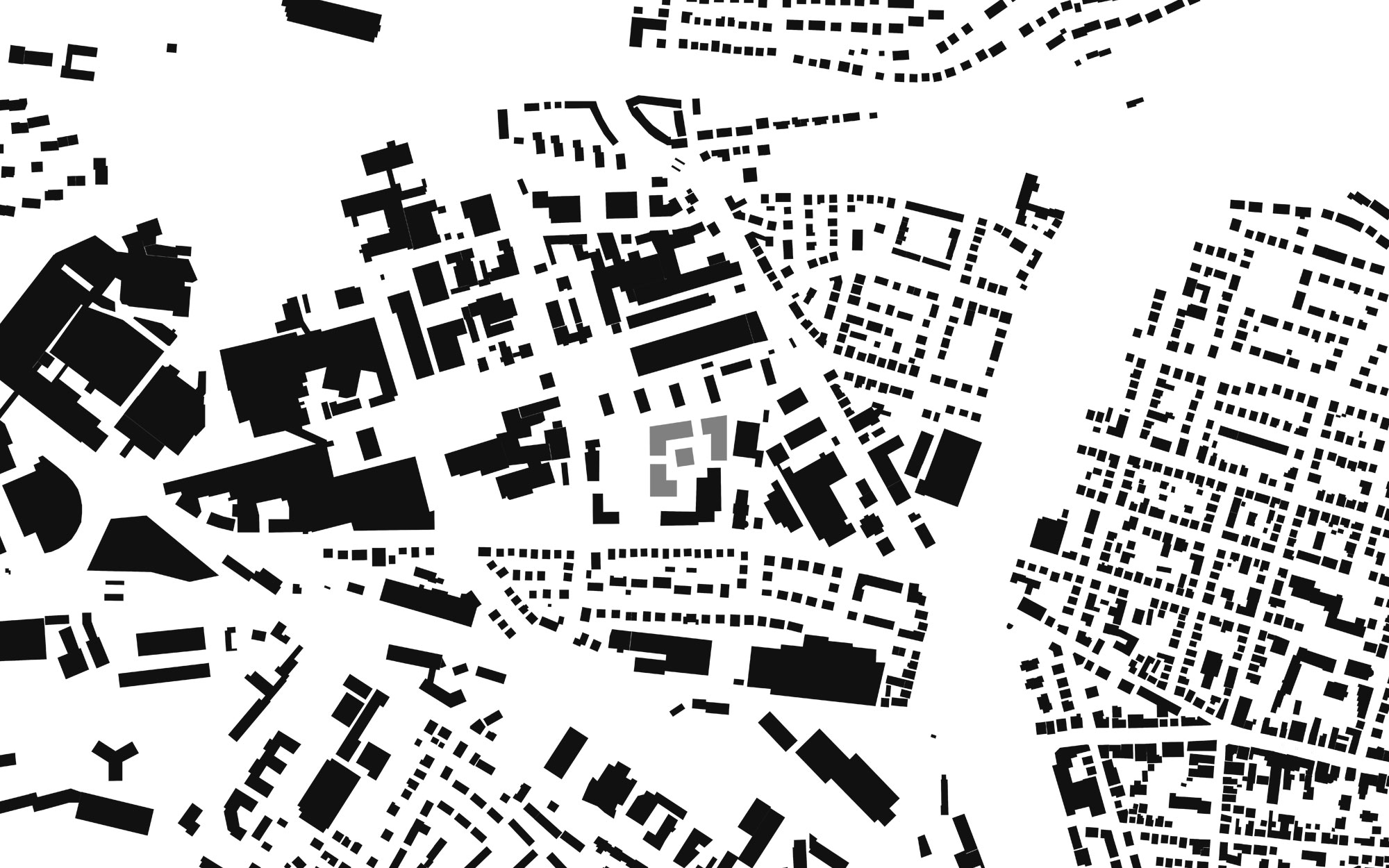 Das hochverdichtete Gebäudeensemble bestehend aus vier Baukörpern, definiert den Stadtraum in dem industriell geprägten Gebiet neu. Das umliegende Quartier wurde in die städtebauliche Struktur und das Nutzungskonzept miteinbezogen, im Besonderen der benachbarte, denkmalgeschützte Gewerbebau.