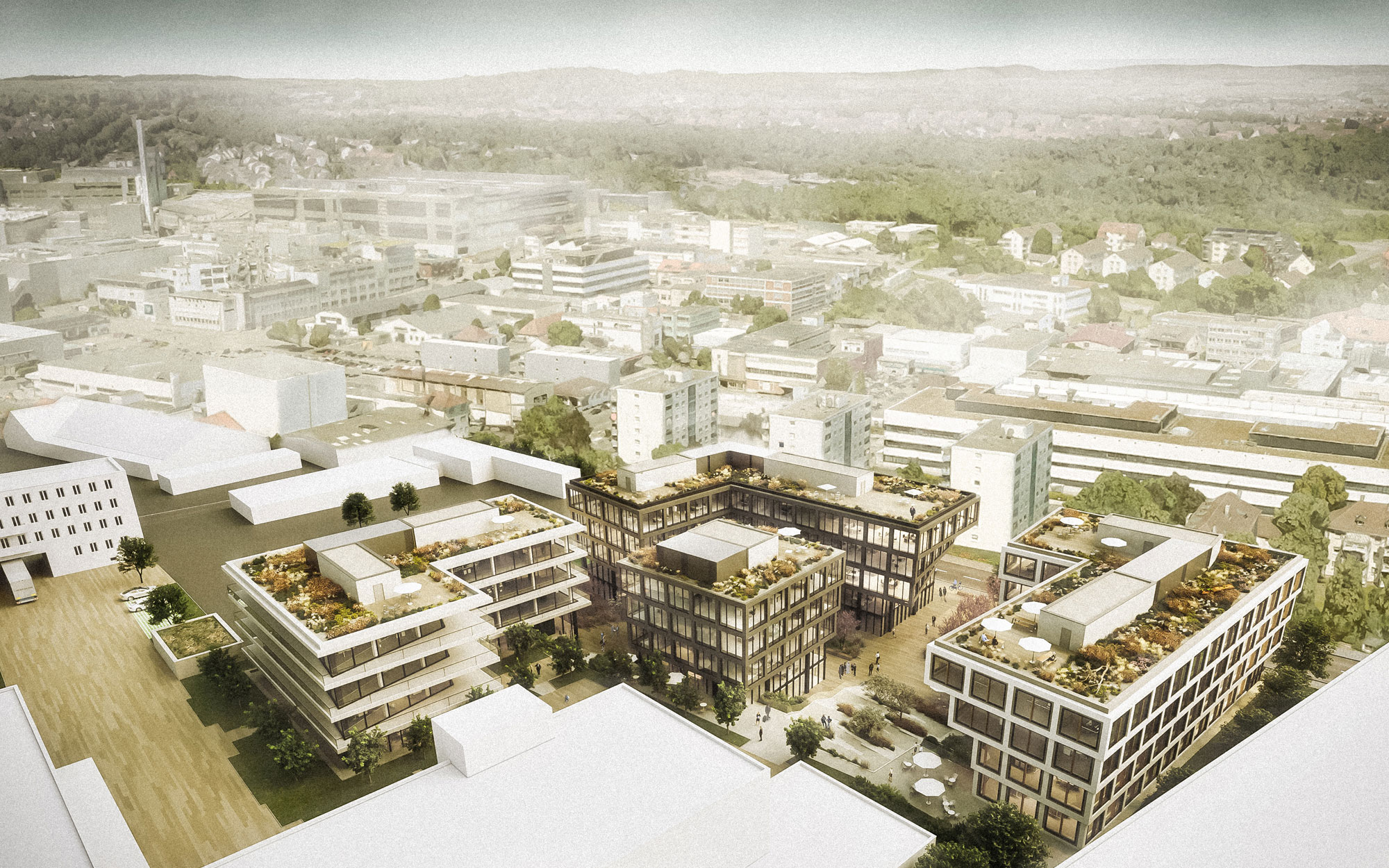 Das zum Teil brachliegende Gewerbegrundstück in Stuttgart Zuffenhausen brachte aufgrund von Beschränkungen im Baurecht große Herausforderungen mit sich. Durch ein visionäres Konzept und innovative Architekturformen mit aufgefächerten, auskragenden Geschossen wurde eine Grundlage für die Gewährung des Baurechtes geschaffen.