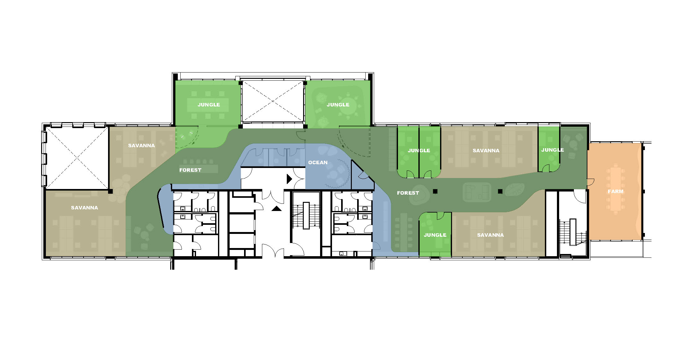 These are the six different natural worlds that give the office spaces a creative atmosphere: