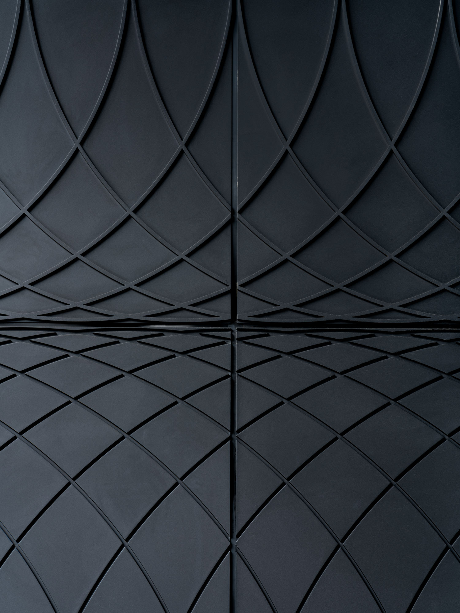 The address is highlighted by a large entrance portal extending over two floors. The deep reveal takes up the motif of the semicircular segments of the balconies. A raised and recessed relief is formed with 15mm thick black anodized flat steel.